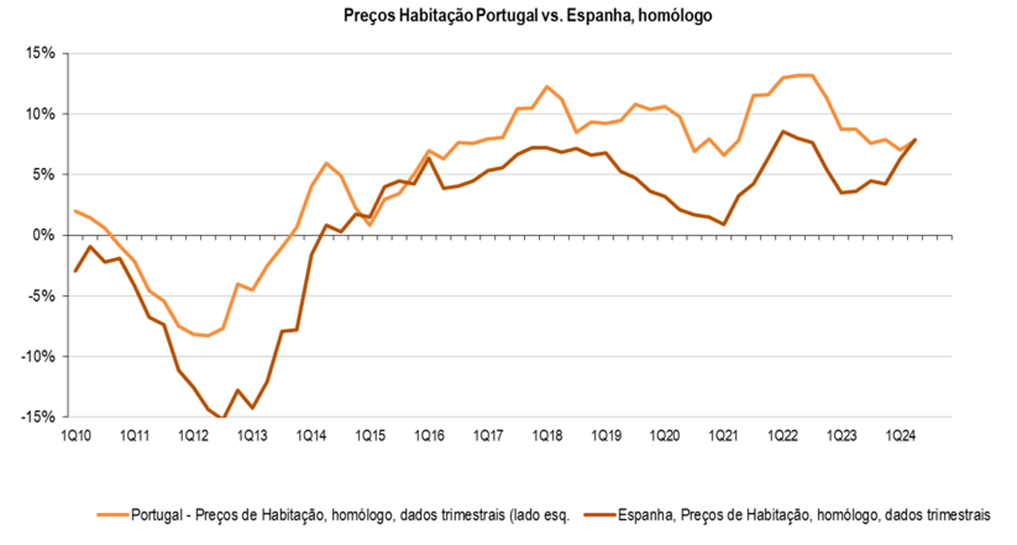 Separadamente, há cerca de duas semanas, os dados divulgados pelo INE espanhol, indicavam relativamente ao 2Q24, preços de habitação: +7,8% homólogo vs. 12MMA: +5,7% e 6MMM: +7,1% (+3,6% em cadeia).