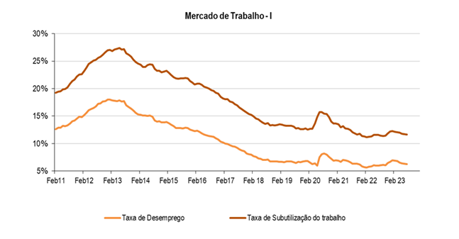 2 – A taxa de Subutilização em julho ajustada pela sazonalidade (inclui para além da população desempregada, o subemprego de trabalhadores a tempo parcial, os inativos à procura de emprego, mas não disponíveis e os inativos disponíveis, mas que não procuram emprego) manteve-se nos 11,6%; compara com 12MMM: 11,8% e 3MMA: 11,7%. Este é um conceito alargado de desemprego, menos volátil e, eventualmente, mais preciso, que inclui também os que por diversos motivos desistiram de procurar emprego, procuram emprego, mas não estão disponíveis e os que trabalham a tempo parcial;