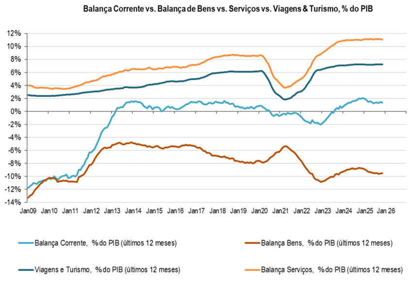 6 – O saldo positivo da Balança de Serviços, em novembro, -3,4% homólogo vs. 12MMM: +7,6% e 3MMM: 4,3%;