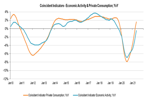 All in all, positive news; however pretty much as expected; once the economy reopens we should expect higher activity. Structurally, it would be interesting to keep the consumption pattern under pressure and taking this opportunity to increase savings more sustainably, as the risk is the increase in consumption after higher savings would benefit mainly the Rest of the World economies.