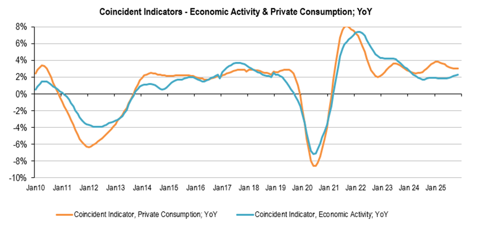 2 - Private Consumption Coincident Indicator: 3.0%YoY vs. 12MMA: 3.4% and 3MMA: 3.0%.