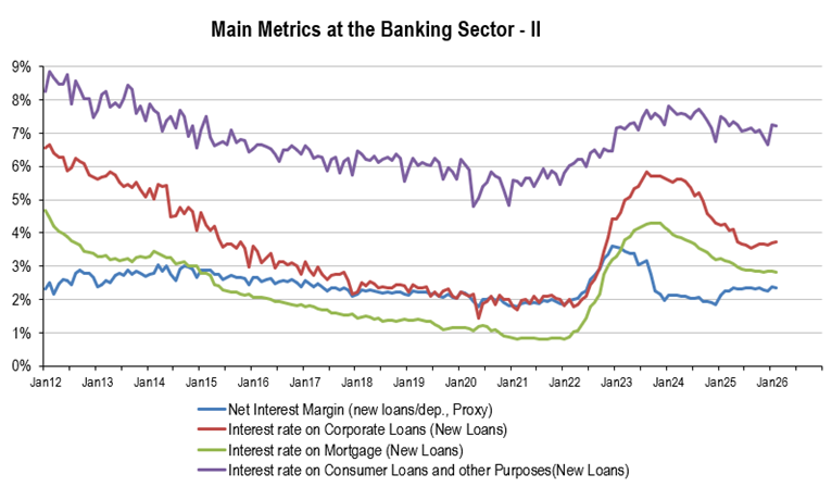 • Consumer Loans and Other Purposes (new Loans): 7.23% vs. Stock: 7.32% and compares with 12MMA: 7.10%/3MMA: 7.05%.