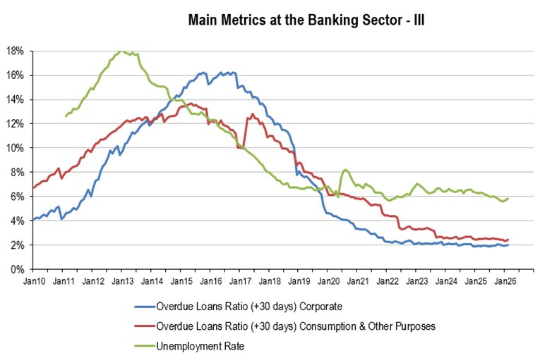 • Total Loans: +6.9%YoY vs. 12MMA: +5.60%/3MMA: +6.81 (Corporates: +2.7%YoY; Mortgages: +9.9% vs. 12MMA: 7.97% and 3MMA: +9.75%; Consumption and Other Purposes: +7.2%)