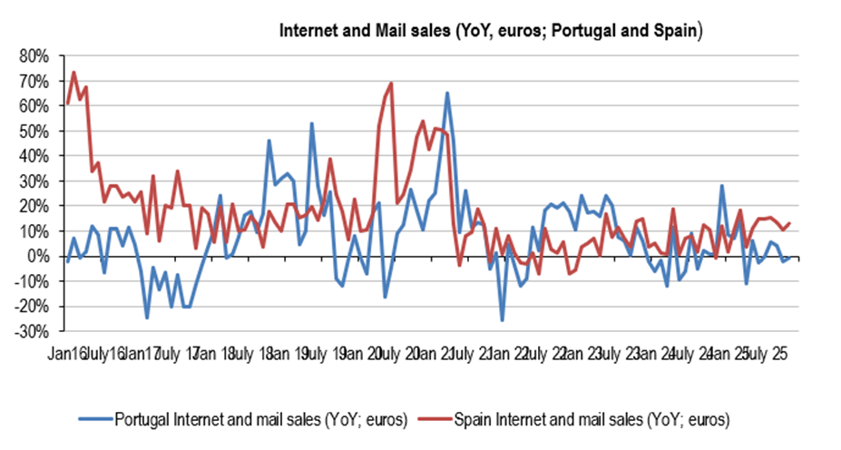 So, in fact, data is just conforming the empirical observation, streets are full of cars and the shops full of people, namely the shopping centers. Finally, the ecommerce in Portugal, apparently keeps underperforming while in Spain, apparently, is growing below 15%