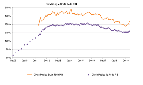 O nível bruto de dívida pública em percentagem do PIB, a medida mais conhecida, voltou a crescer, no entanto, pode estar relacionado com alterações nas políticas de financiamento, dado o contexto atual, nomeadamente com o intuito de deter liquidez adicional para fazer face a eventualidades.